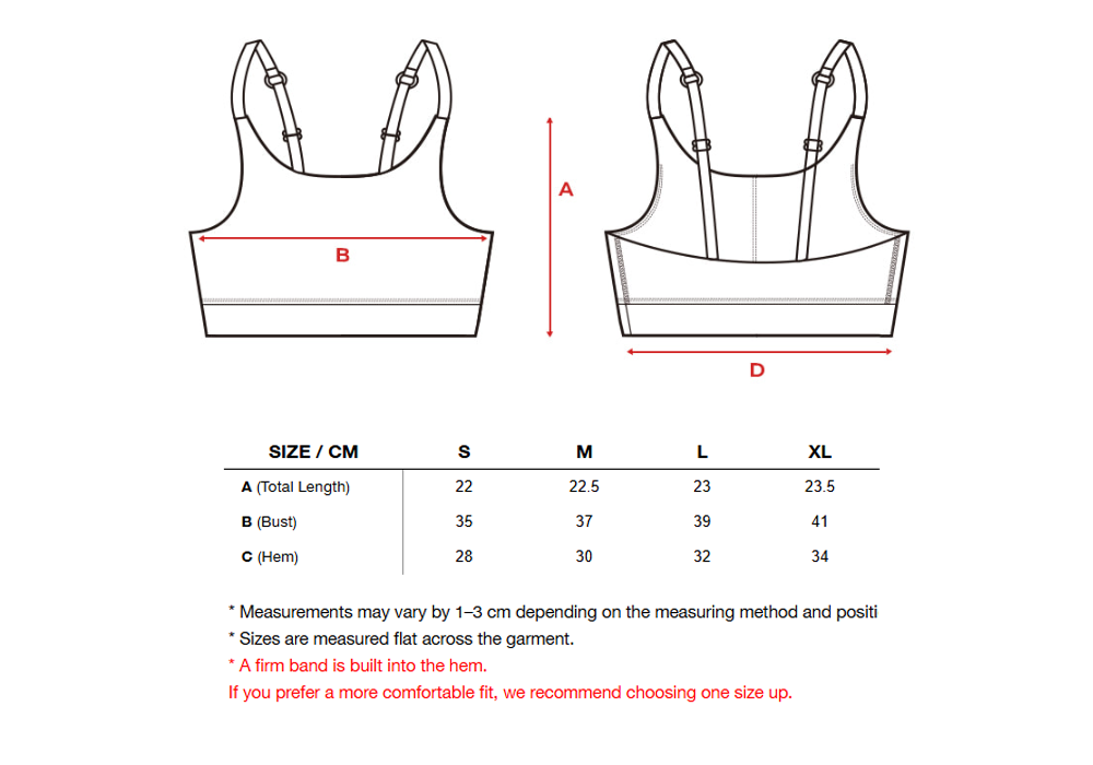 A stretchy yet firm band under the bust provides excellent stability, preventing movement even during large upper-body motions and offering reliable support for any performance.