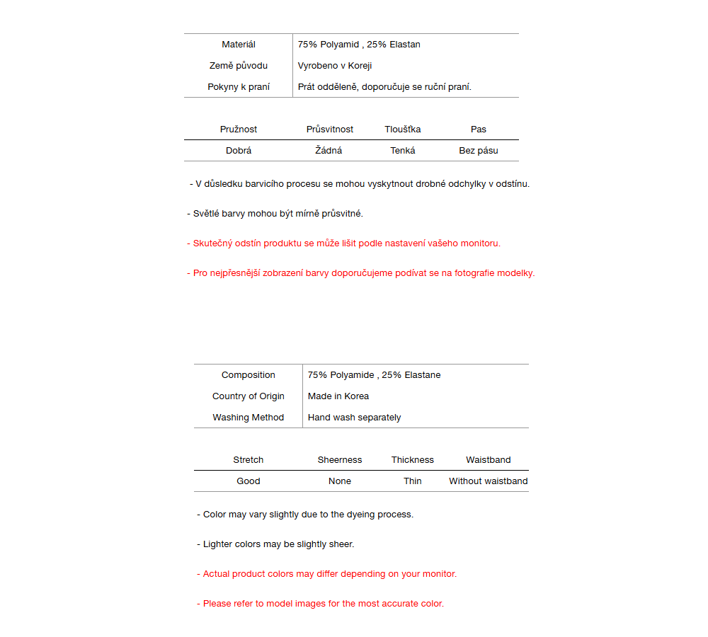 * Vzhledem k povaze tohoto produktu nejsou výměny ani vrácení zboží možné.