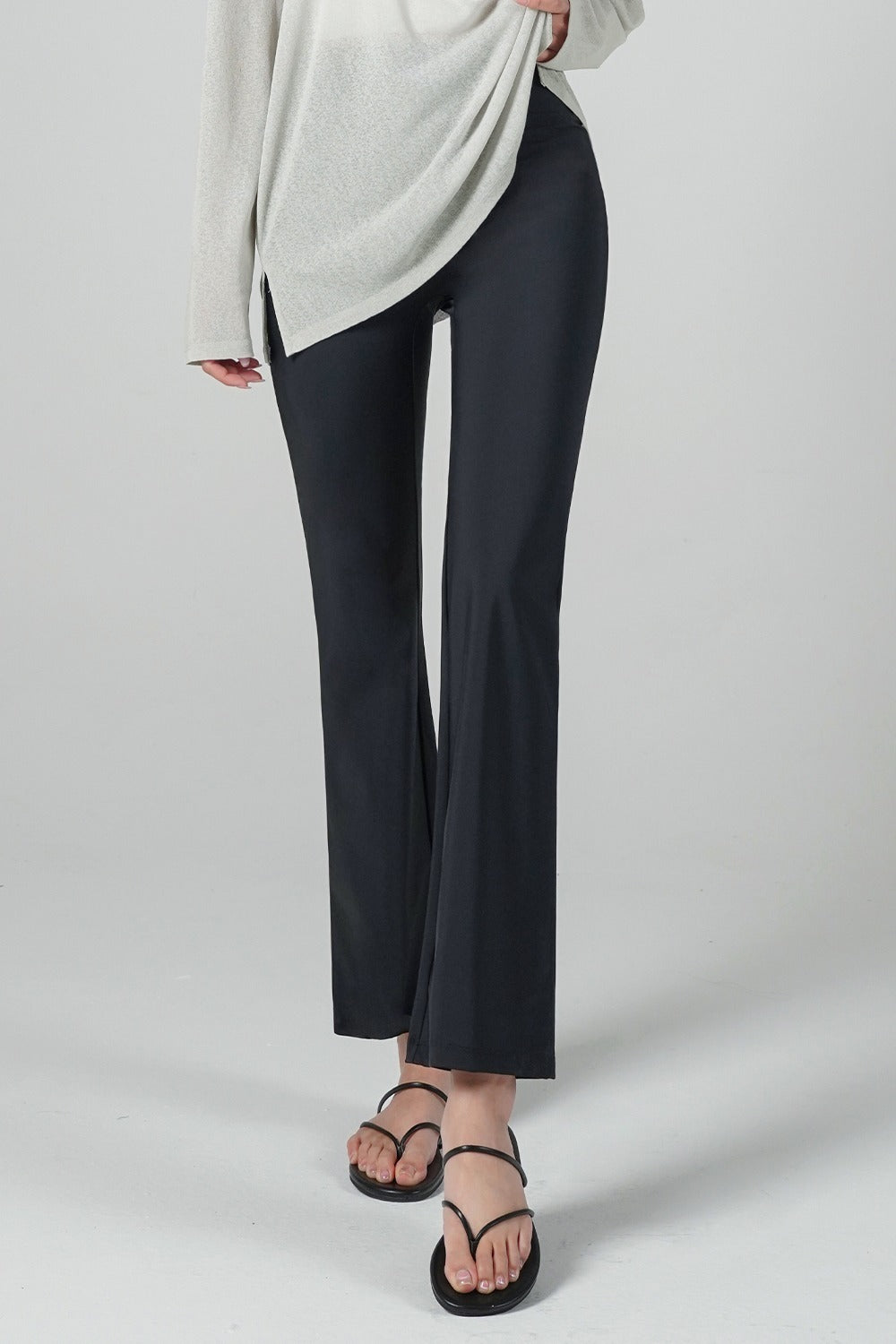 Přirozeně rozšířený střih bootcut vytváří elegantní a prodlouženou linii nohavic.