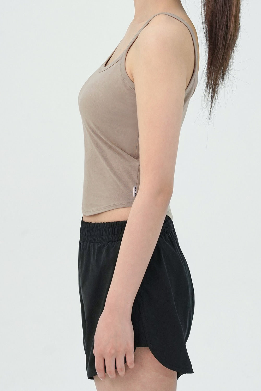 Cottonic Round-Neck Sleeveless Top - Wood Brown