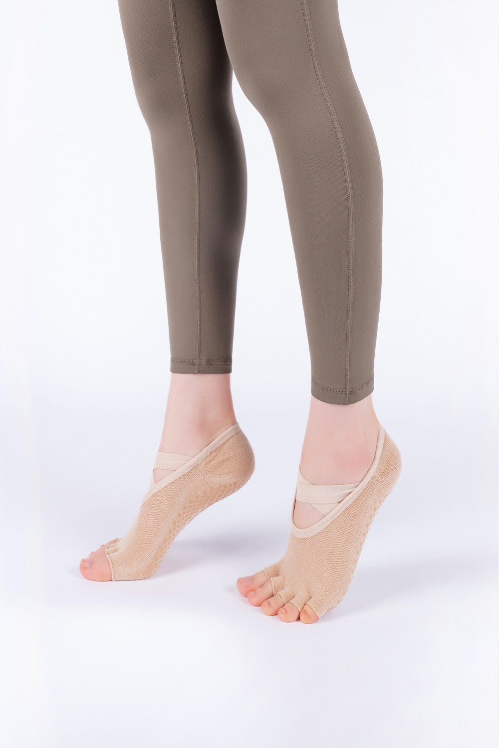 Tyto ponožky s elegantním křížovým páskem bezpečně drží na místě během jógy, pilates nebo cvičení u barre.