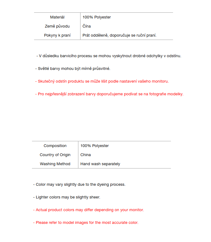 Vrácené zboží musí být zasláno v původním stavu: nenošené, neprané, nepoškozené a s originálními visačkami/obalem.