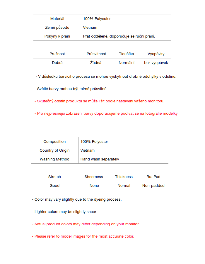 Vrácené zboží musí být zasláno v původním stavu: nenošené, neprané, nepoškozené a s originálními visačkami/obalem.