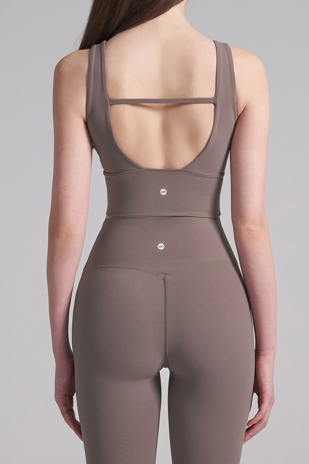 Střih s volným zádovým knoflíkem zvýrazňuje vaše zádové svaly a dodává jim pevný vzhled, zatímco přidané zkřížené ramínka zabraňují klouzání a poskytují extra oporu.
