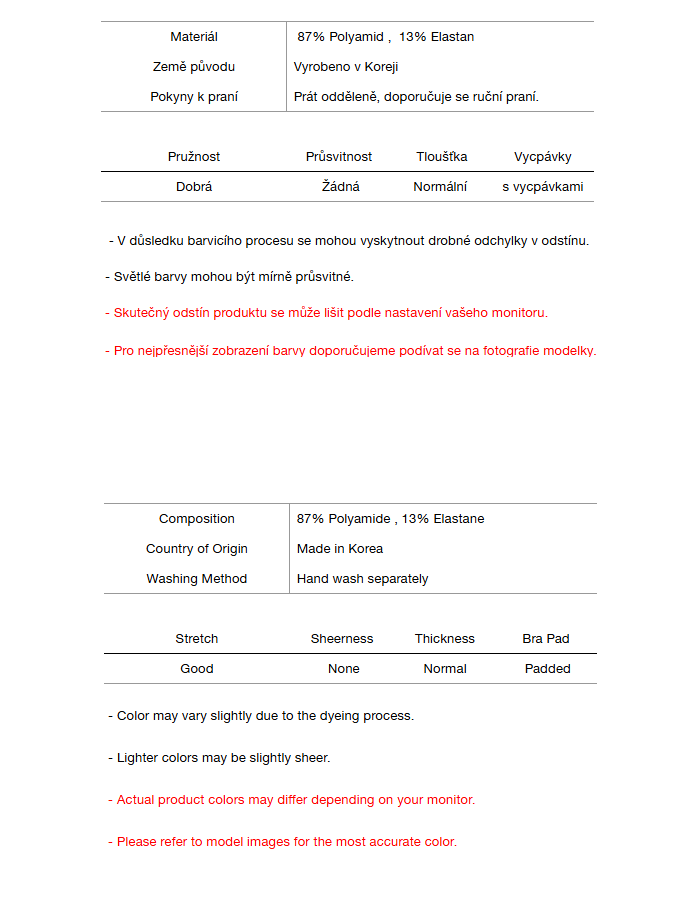 • Tmavé oděvy mohou prosakovat – před nošením perte odděleně.