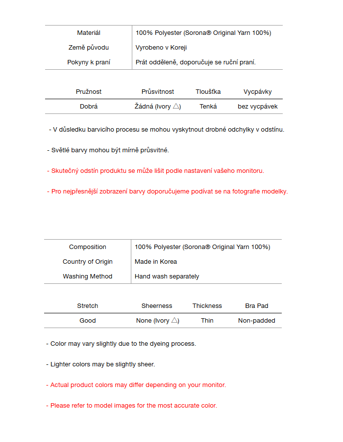 • Tmavé oděvy mohou prosakovat – před nošením perte odděleně.