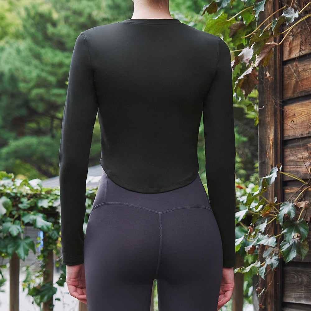 Exkluzivní materiál ATY ADVANCE najdete u modelu SKPG Round Neck Long Sleeve Crop Top.