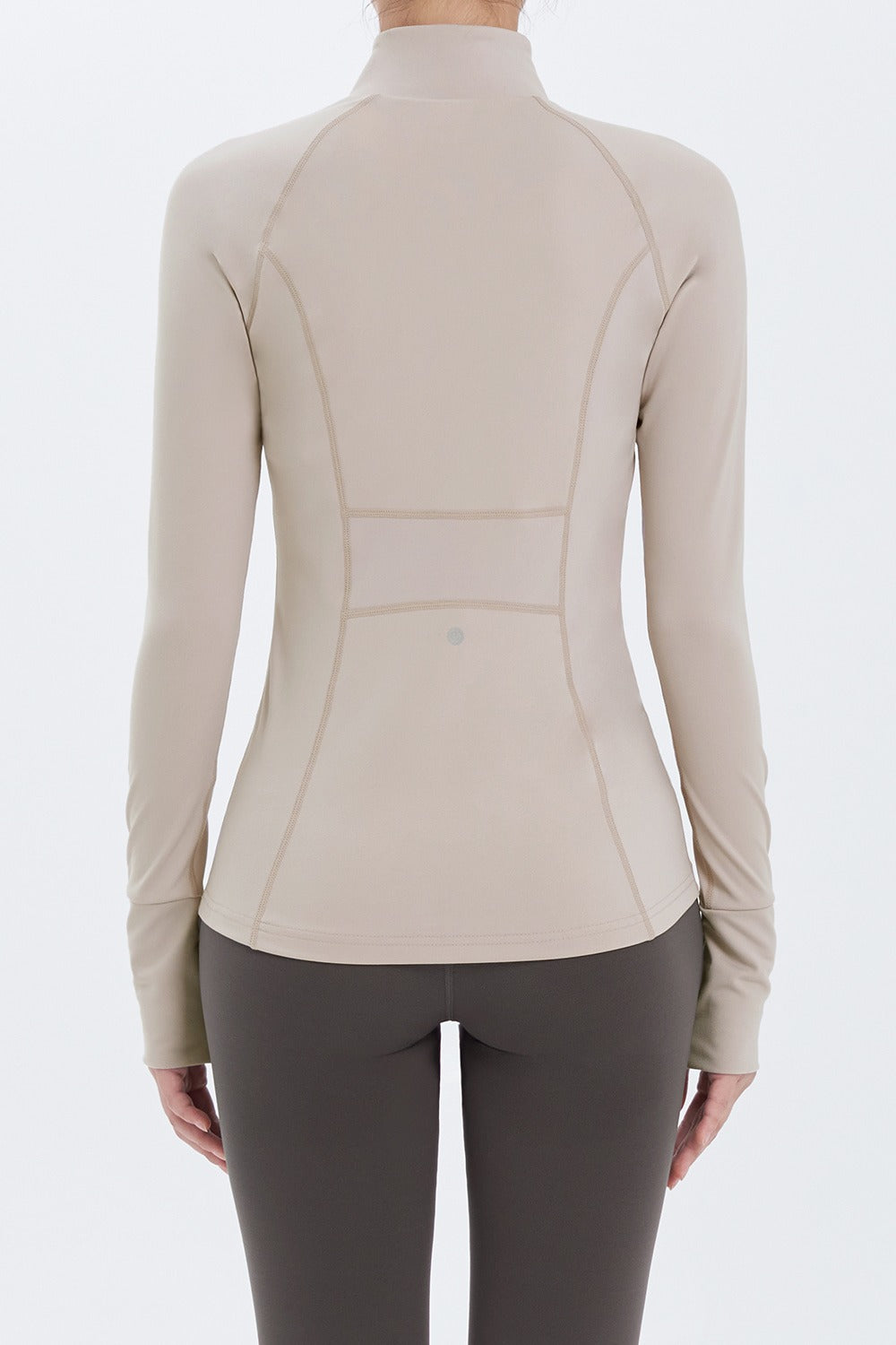 Vysoký výstřih pomáhá udržovat tělesné teplo a zároveň přirozeně obepíná a chrání krk během cvičení.